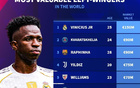 德轉(zhuǎn)列左邊鋒身價(jià)榜:維尼修斯1.5億歐居首,KK第二